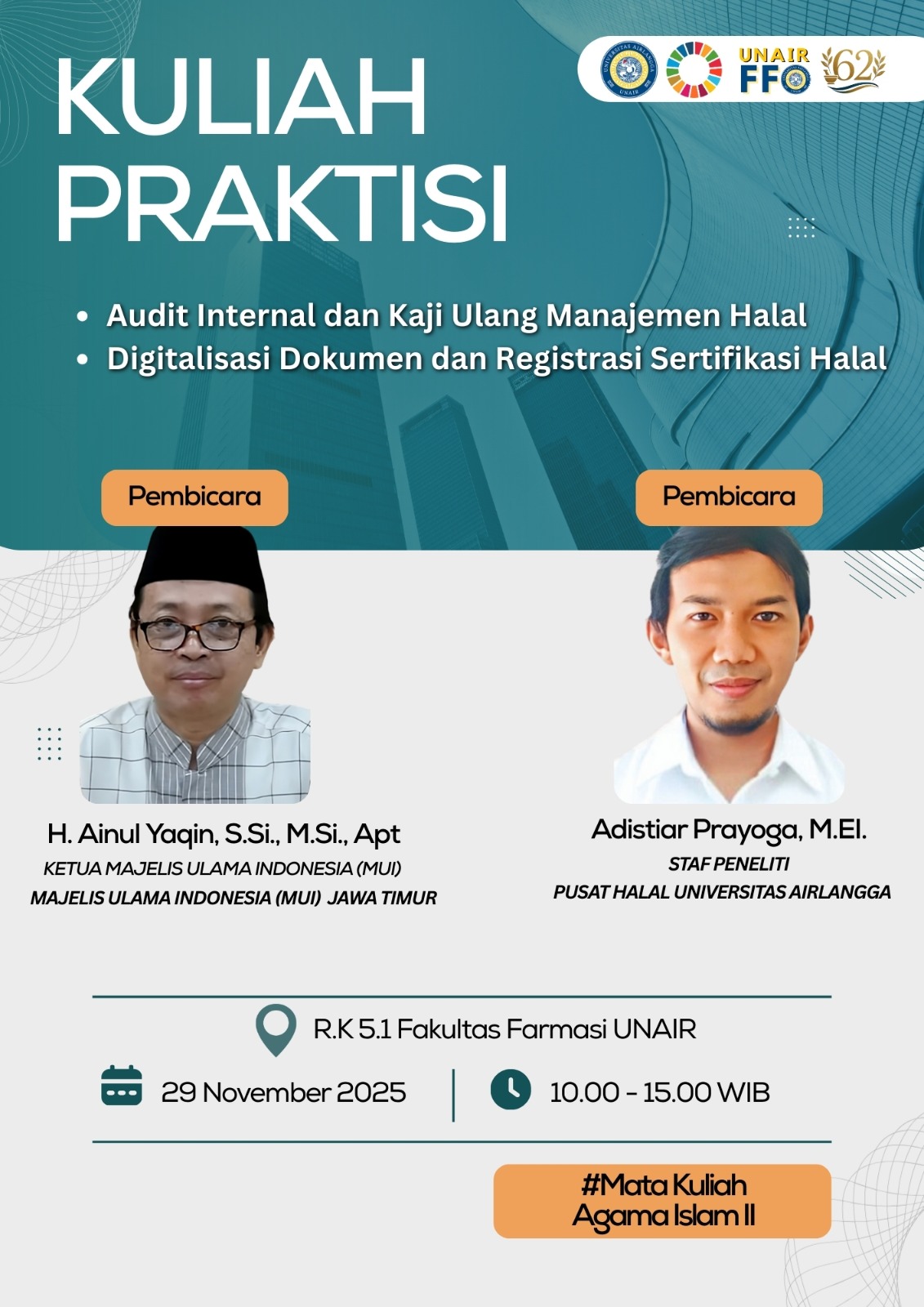 Guest Lecture: H. Ainul Yaqin, S.Si., M.Si., Apt. & Adistiar Prayoga, M.EI. Fakultas Farmasi Universitas Airlangga 25 Nopember 2025