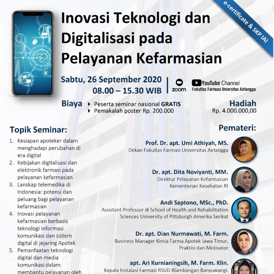 Kegiatan ini diselenggarakan oleh Fakultas Farmasi Universitas Airlangga dengan pelaksana dari Kelompok Riset INACORE (Innovative Pharmacy Practice and Integrated Outcome Research) dalam rangka Dies Natalis ke-66 UNAIR dan Dies Natalis ke-57 Farmasi Un