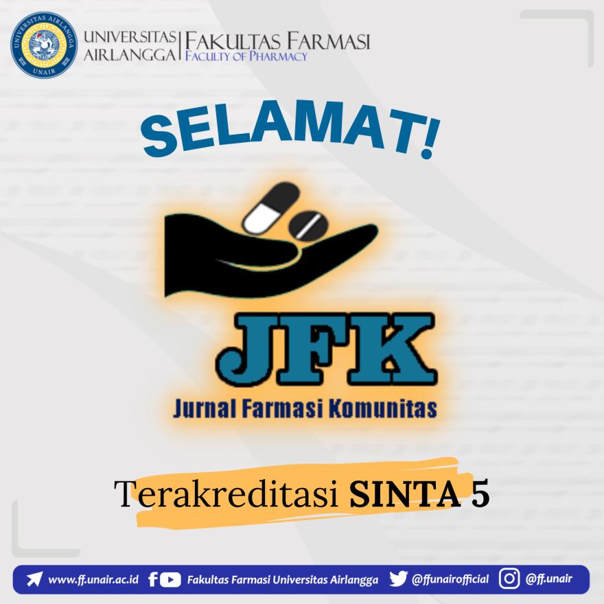 Berdasarkan Surat Keputusan (SK) Direktur Jenderal Pendidikan Tinggi, Riset, dan Teknologi Nomor 225/E/KPT/2022, tanggal 7 Desember 2022, Jurnal Farmasi Komunitas (JFK) memperoleh SINTA ...