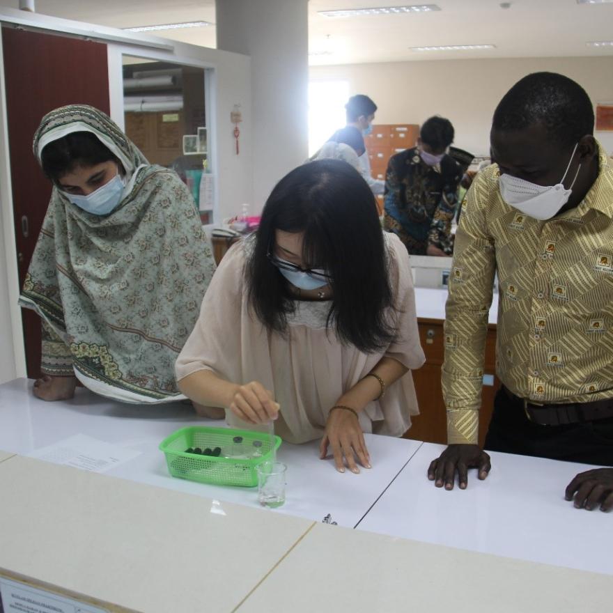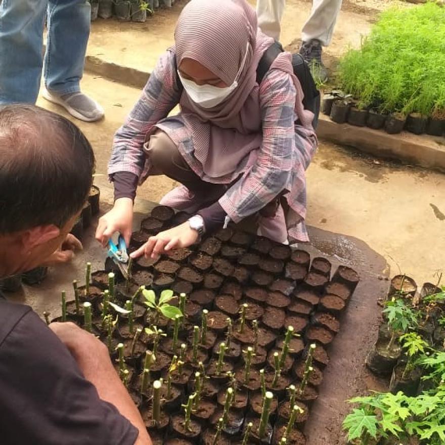 Mahasiswa internasional dan peserta Summer School melakukan penanaman TOGA. Mereka terbagi menjadi beberapa kelompok untuk menanam berbagai jenis TOGA pada lahan kosong yang disediakan