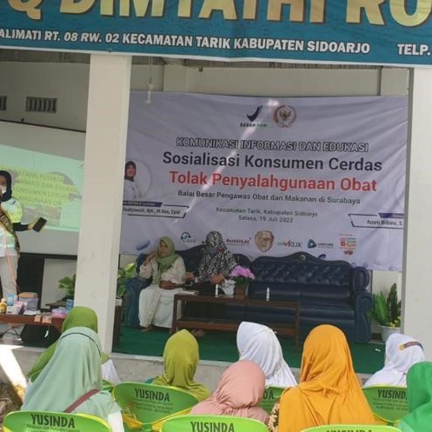 Mahasiswa FF UNAIR yang juga Juara 1 Duta Kosmetik Aman BBPOM Surabaya, Afifatuzzahroh, melakukan sosialisasi tolak penyalahgunaan obat yang dilaksanakan di wilayah Sidoarjo bersama Balai Besar POM di Surabay