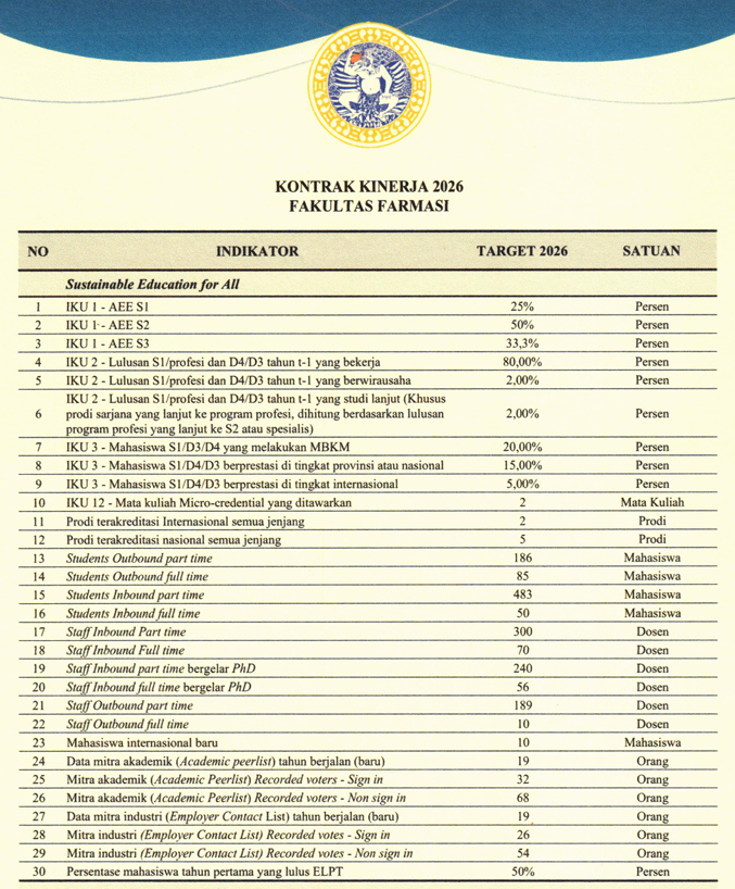 Rencana Strategis (RENSTRA) Fakultas Farmasi Universitas Airlangga Tahun 2026-2031 disusun sebagai bentuk dan arah pengembangan Fakultas Farmasi Universitas Airlangga...