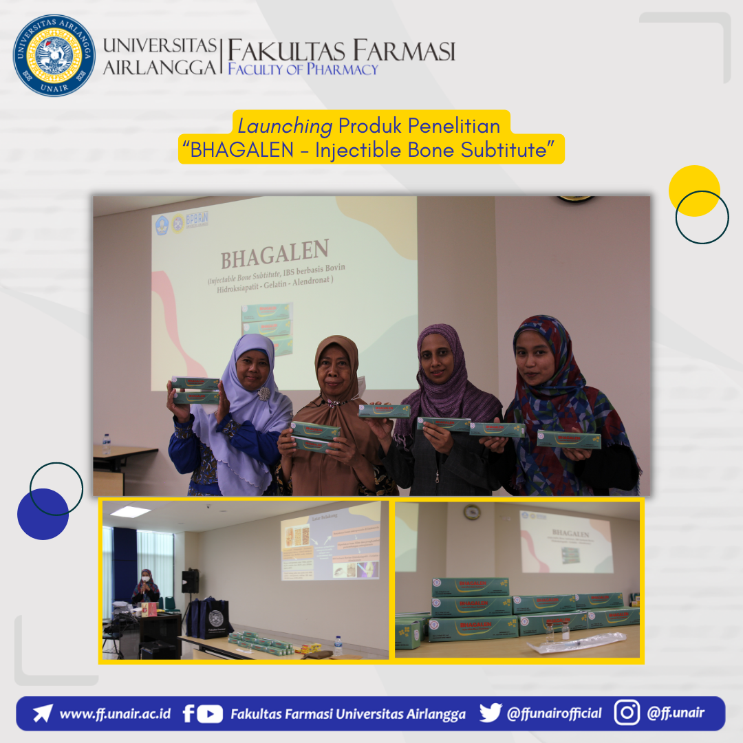 Bertempatkan pada ruangan yang sama, setelah diadakannya kegiatan poster presentation untuk mahasiswa mata kuliah Praktikum Farmakologi dan Toksikologi, kegiatan berlanjut dengan Launching Produk Penelitian “BHAGALEN - Injectible Bone Subtitute”.