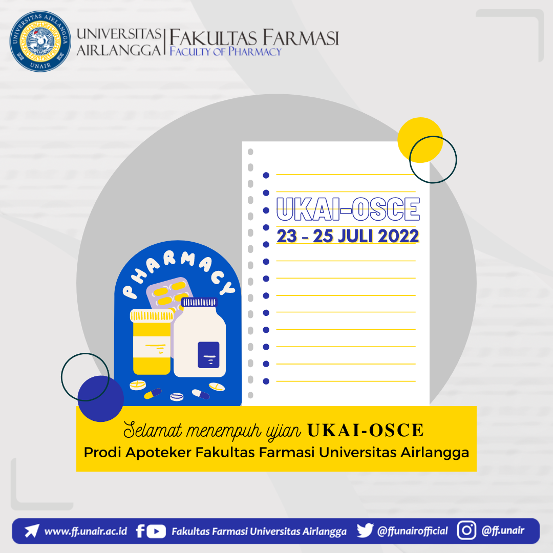 Selamat menempuh ujian UKAI-OSCE untuk Mahasiswa Program Studi Pendidikan Profesi Apoteker Fakultas Farmasi Universitas Airlangga. Semoga dilancarkan dan memperoleh hasil yang memuaskan sesuai yang diharapkan. Semangat!