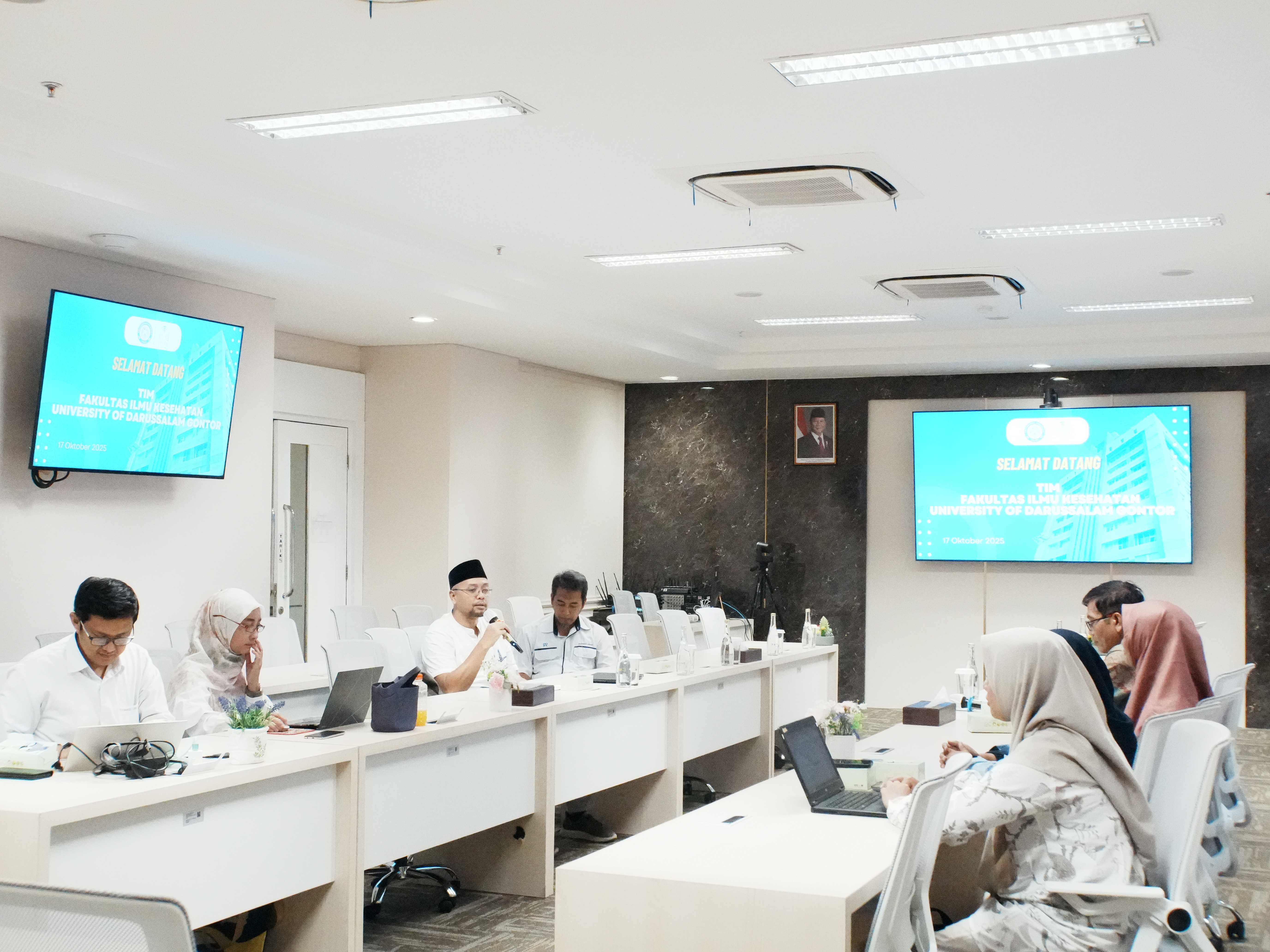 Fakultas Farmasi Universitas Airlangga (FF UNAIR) menerima kunjungan dari Fakultas Ilmu Kesehatan (FIK) Universitas Darussalam Gontor pada Jumat, 17 Oktober 2025. Kegiatan ini berlangsung di ruang sidang Gedung Nanizar Zaman Joenoes, Fakultas Farmasi UNAIR.