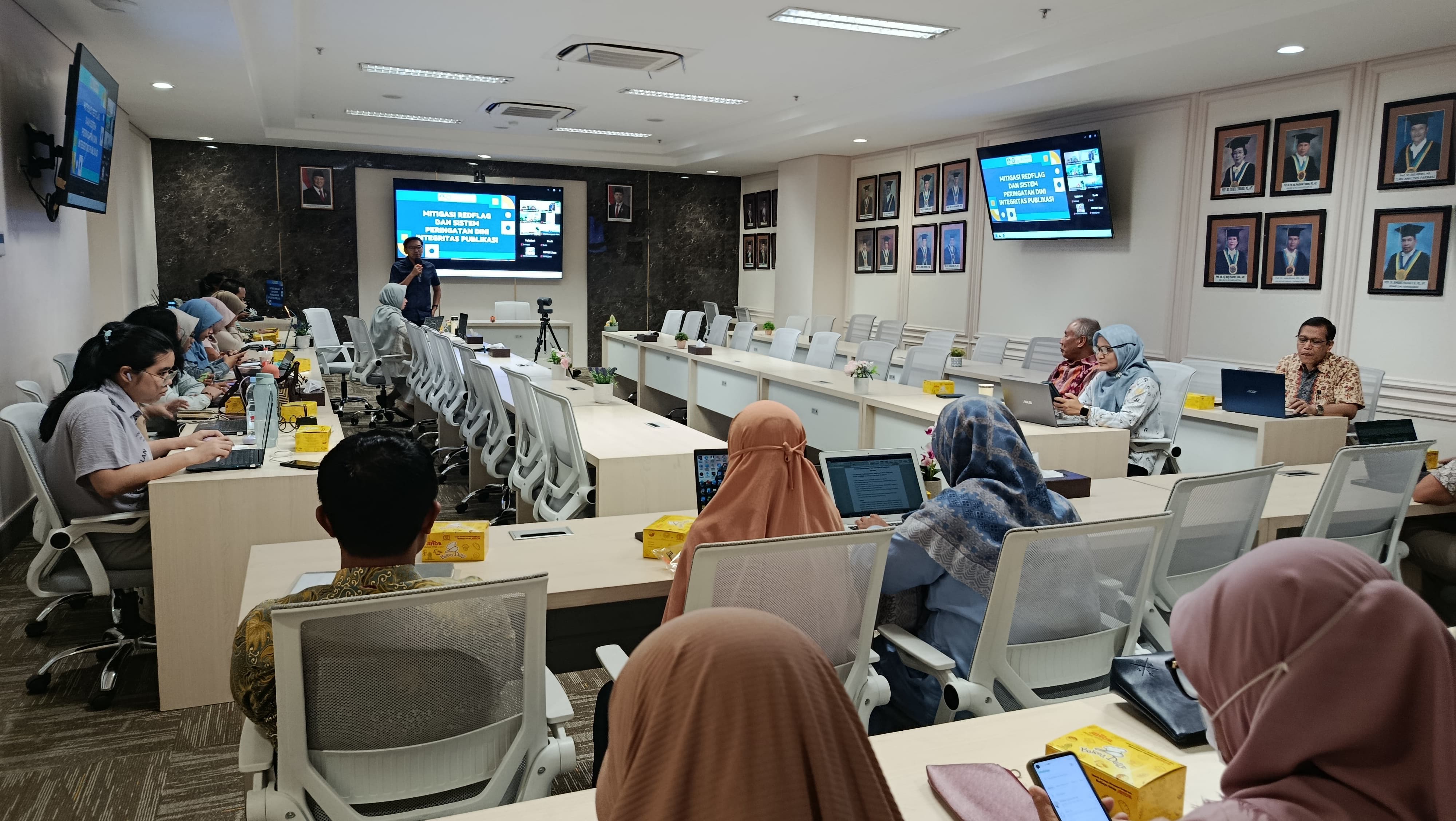 Fakultas Farmasi Universitas Airlangga (FF UNAIR) menyelenggarakan kegiatan Sosialisasi Mitigasi Retraction Paper dan Redflag Journal pada Senin, 3 November 2025. Kegiatan ini berlangsung di Ruang Sidang Utama Gedung Nanizar Zaman Joenoes dan dihadiri oleh dosen dan mahasiswa pascasarjana di lingkungan FF UNAIR.