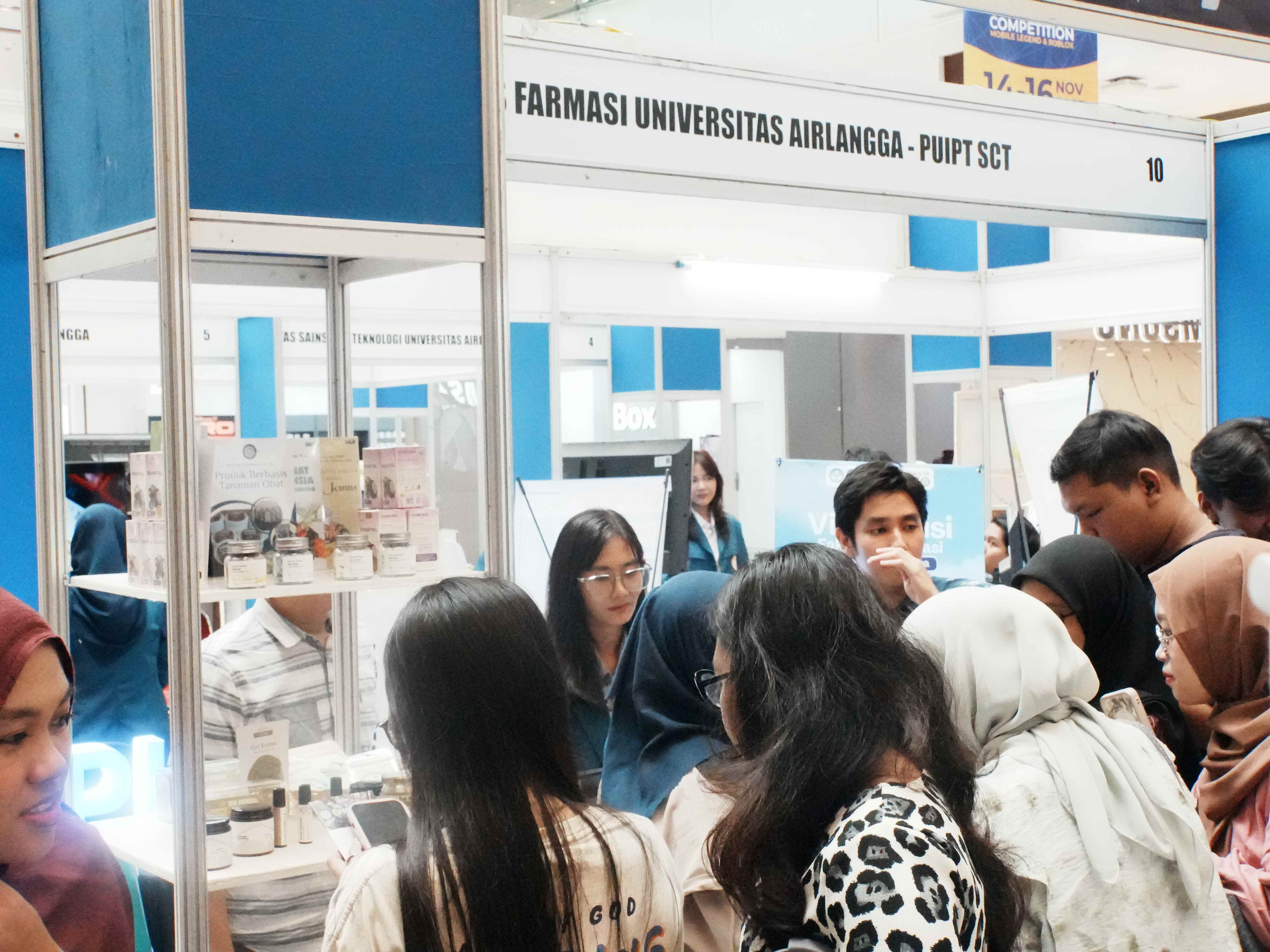 Dalam kegiatan ini, FF UNAIR membuka booth pameran yang menampilkan beragam produk unggulan hasil penelitian dosen dan mahasiswa. Sejumlah inovasi yang dipamerkan bahkan telah mencapai tahap siap jual, seperti Sains4Skin dan Diabetkol.