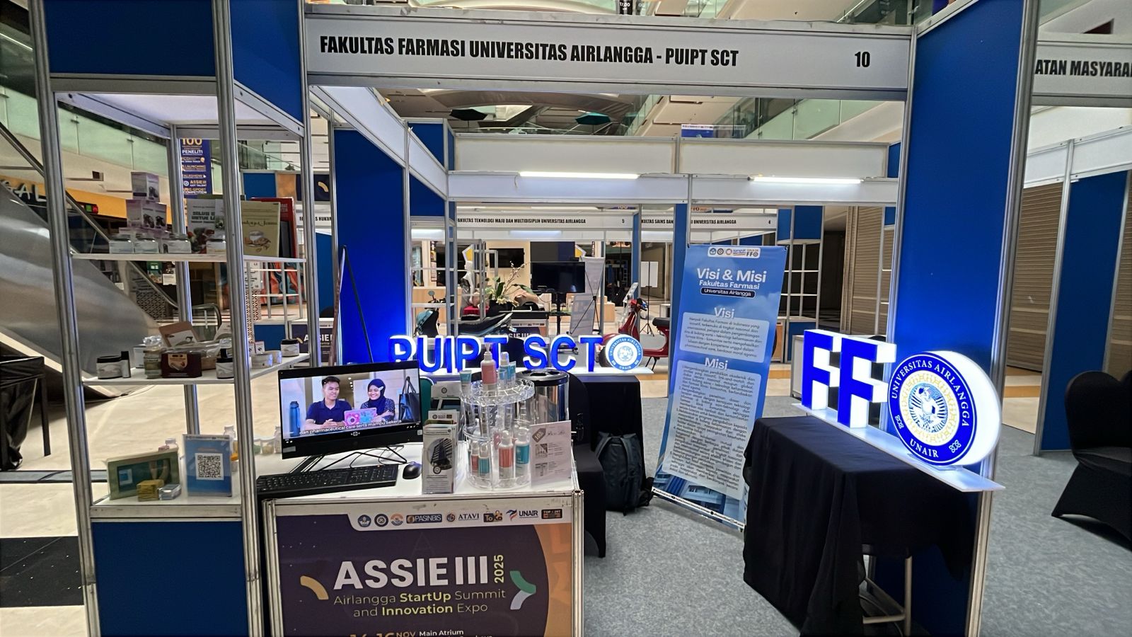 Fakultas Farmasi Universitas Airlangga (FF UNAIR) kembali menunjukkan komitmennya dalam mendukung pertumbuhan inovasi dan pengembangan produk berbasis riset dengan berpartisipasi aktif pada StartUp Summit and Innovation Expo (ASSIE III) 2025. Kegiatan yang diselenggarakan oleh Pusat Akselerasi Inovasi dan Bisnis (PASINBIS) UNAIR ini berlangsung pada 14–16 November 2025 di Main Atrium Grand City Surabaya.