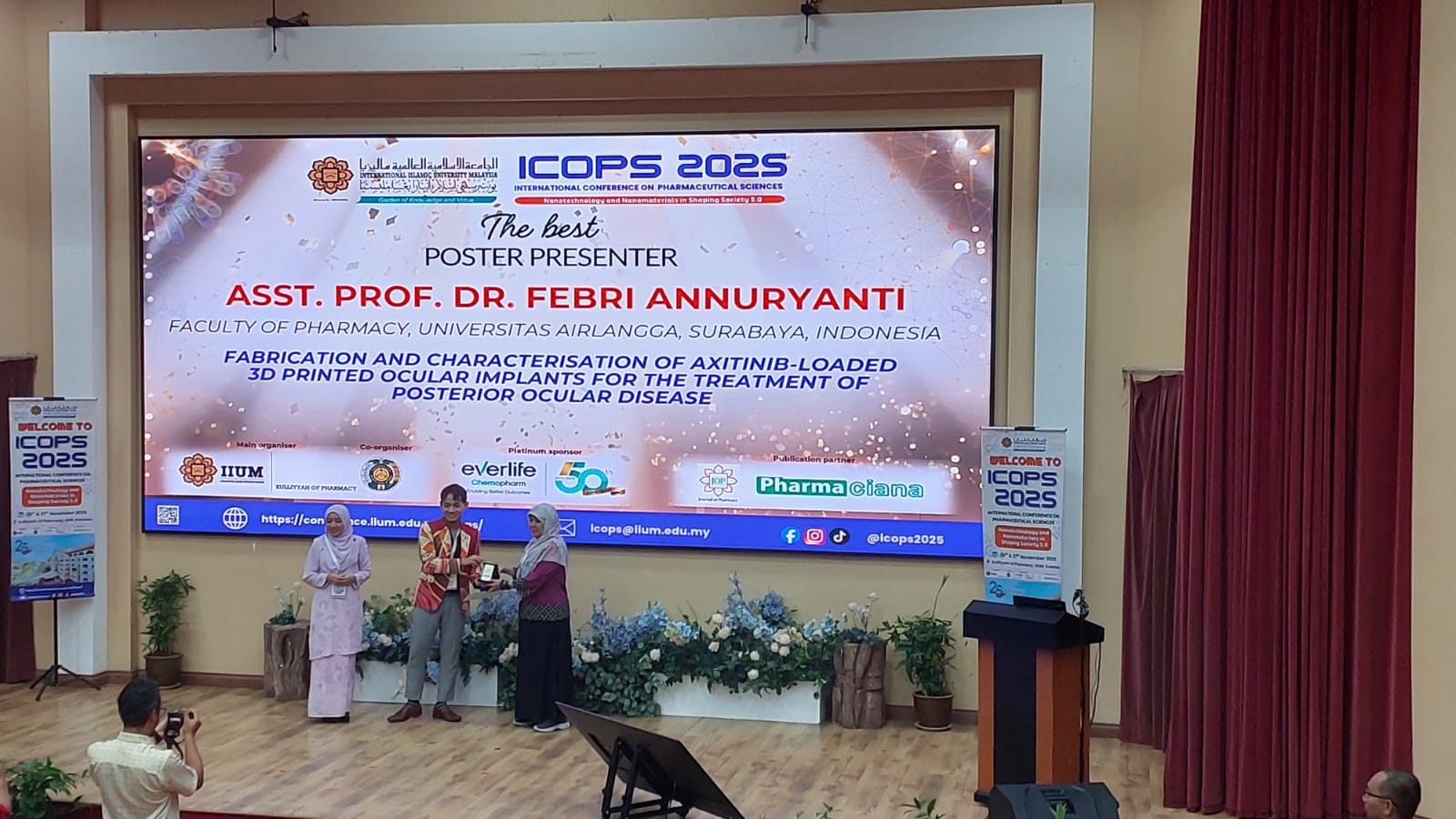 Dosen Fakultas Farmasi Universitas Airlangga (FF UNAIR), apt. Febri Annuryanti, M.Sc., Ph.D., mengharumkan nama institusi dengan meraih prestasi pada ajang bergengsi International Conference on Pharmaceutical Sciences (ICOPS) 2025. Pada konferensi bertaraf internasional yang berlangsung pada 25–27 November 2025 di Malaysia tersebut, Bu Febri berhasil meraih prestasi sebagai Best Poster Presenter.