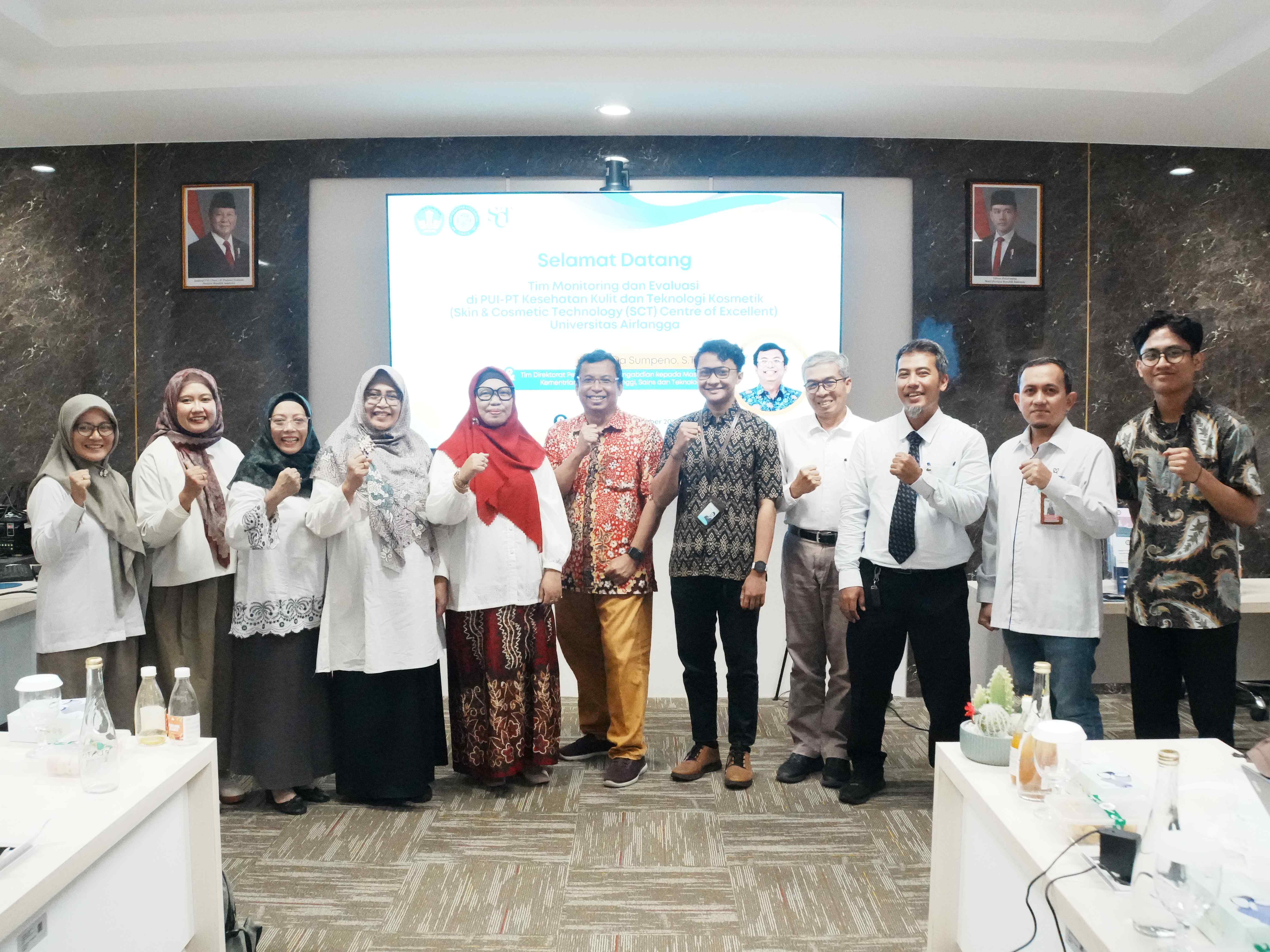 Pusat Unggulan Iptek Perguruan Tinggi Kesehatan Kulit dan Teknologi Kosmetik (PUI-PT SCT) Universitas Airlangga menjalani kegiatan Monitoring dan Evaluasi (Monev) pada Jumat, 28 November 2025. Kegiatan yang berlangsung di ruang sidang lantai 2 Gedung Nanizar Zaman Joenoes ini berjalan lancar dan produktif.
