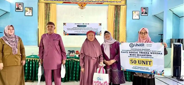 Pada 7 Oktober 2025, tim pengmas Fakultas Farmasi Universitas Airlangga (FF UNAIR) bekerjasama dengan Rumah Sakit Universitas Airlangga (RS UNAIR) berangkat ke Banjarbaru, Kalimantan Selatan mengusung berbagai agenda penyuluhan untuk panti sosial. Diketuai oleh Prof. Dr. apt. Yulistiani, tim pengmas FF UNAIR melakukan edukasi tentang semua hal penting yang perlu diperhatikan pada saat mengkonsumsi obat-obatan. Kegiatan tersebut dilaksanakan di Panti Perlindungan dan Rehabilitasi Sosial Lanjut Usia (PPRSLU) Budi Sejahtera.
