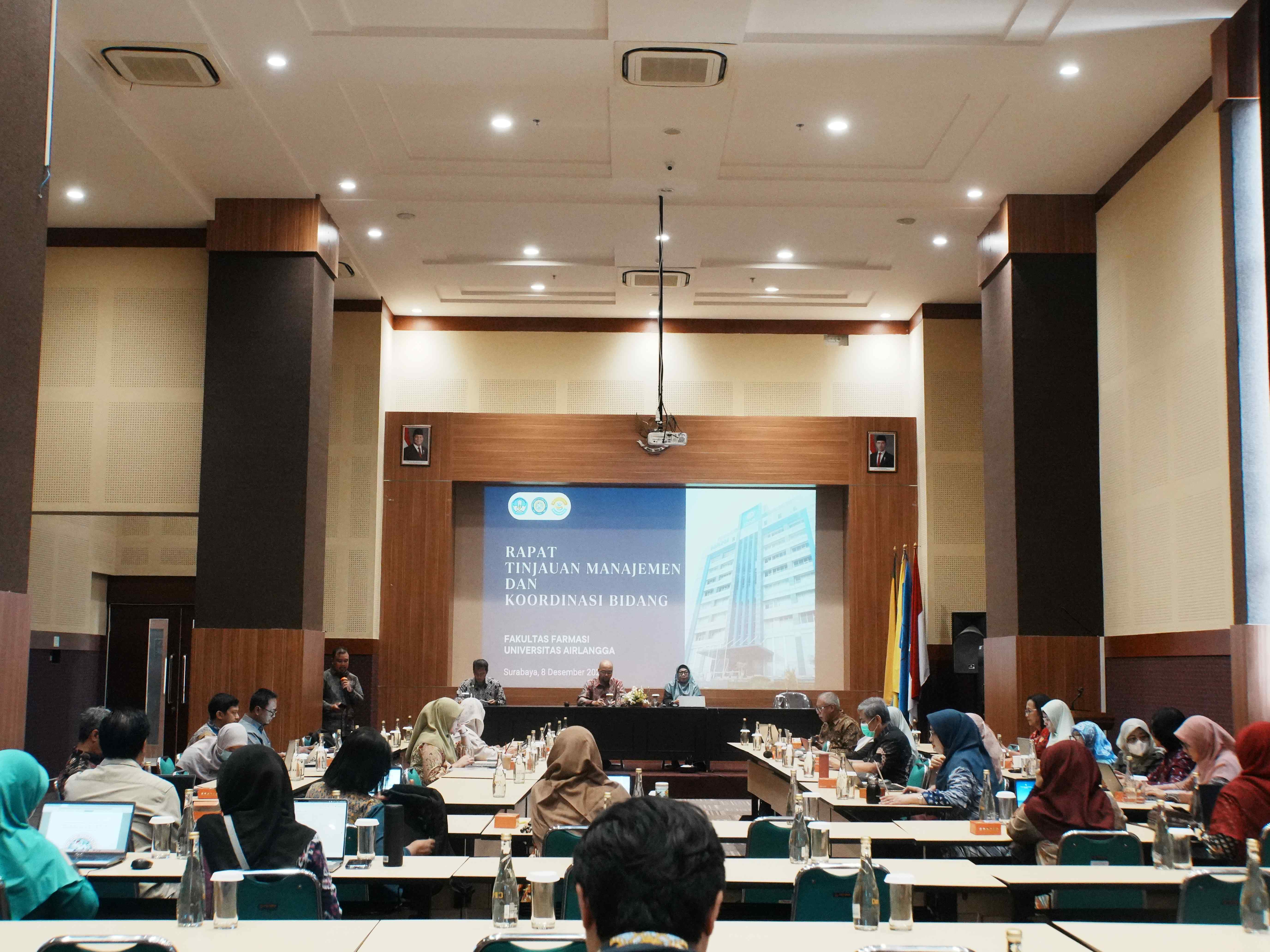 Fakultas Farmasi Universitas Airlangga (FF UNAIR) menyelenggarakan Rapat Tinjauan Manajemen dan Koordinasi Bidang pada Senin, 8 Desember 2025. Kegiatan ini dilaksanakan di Aula Gedung Nanizar Zaman Joenoes dan dihadiri oleh pimpinan fakultas, kepala bagian, serta seluruh kepala subbagian di lingkungan FF UNAIR. Kegiatan ini merupakan tindak lanjut dari Rapat Koordinasi Pimpinan yang telah dilaksanakan pada 26 November 2025 lalu.