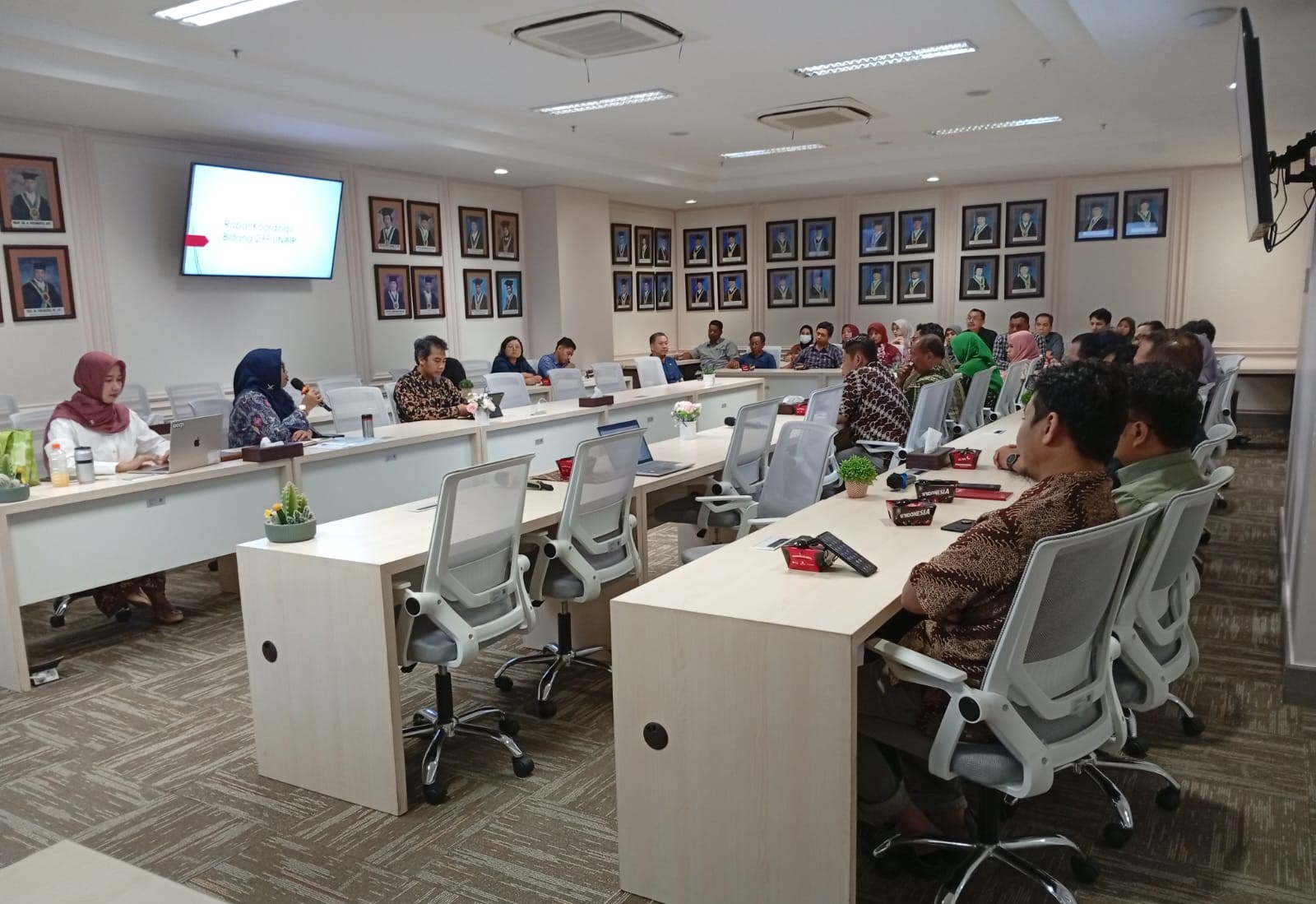 Fakultas Farmasi Universitas Airlangga (FF UNAIR) menyelenggarakan Rapat Koordinasi Bidang yang dilaksanakan selama tiga hari, mulai tanggal 13 hingga 15 Januari 2026. Kegiatan ini bertempat di Ruang Sidang Utama Gedung Nanizar Zaman Joenoes dan dihadiri oleh pimpinan FF UNAIR serta seluruh staf dari bidang terkait.