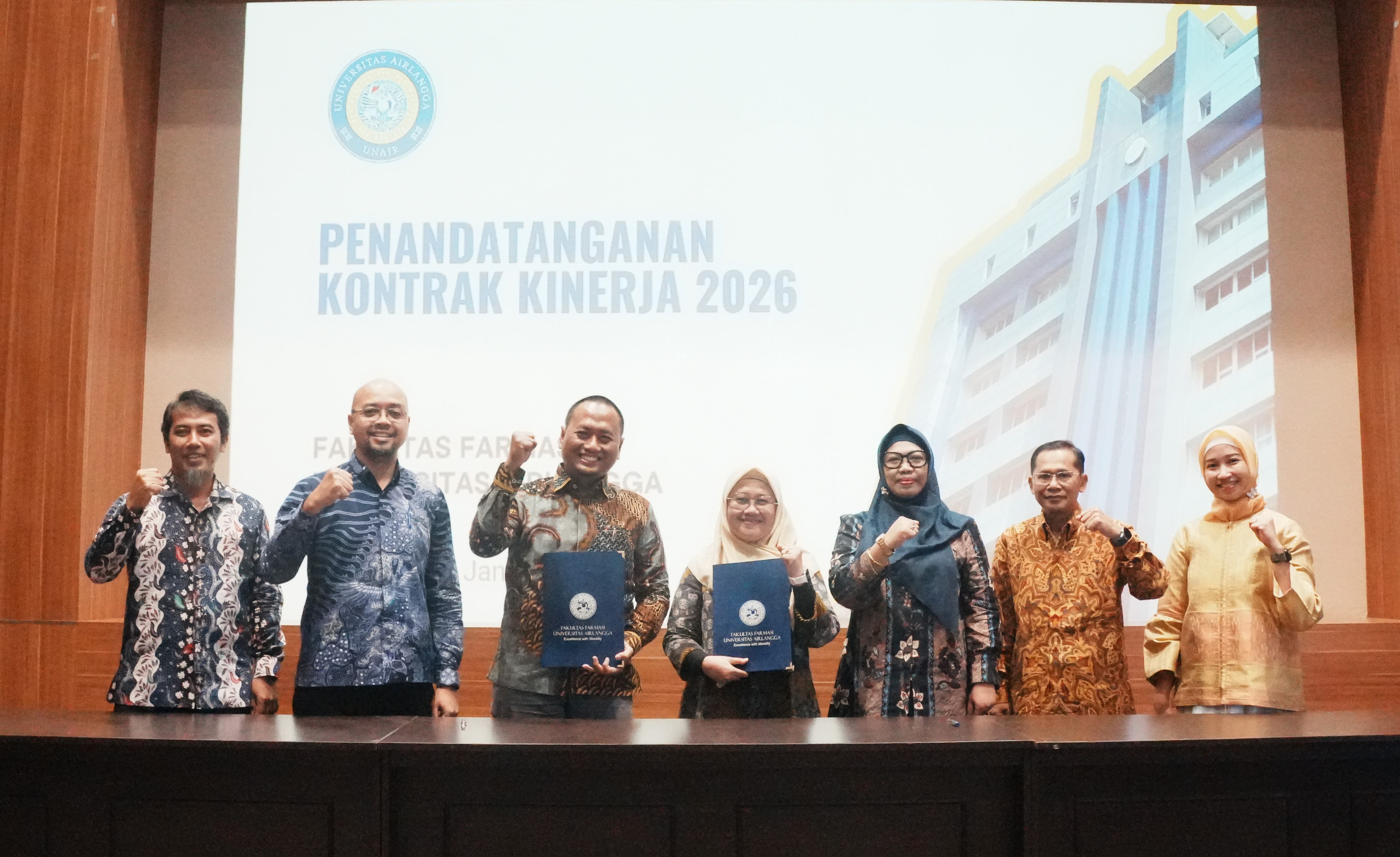 Fakultas Farmasi Universitas Airlangga (FF UNAIR) menyelenggarakan kegiatan penandatanganan kontrak kinerja sebagai bentuk komitmen bersama dalam mewujudkan tata kelola fakultas yang akuntabel dan berorientasi pada peningkatan kinerja tridarma perguruan tinggi. Kegiatan ini diikuti oleh pimpinan unit kerja di lingkungan FF UNAIR dan disaksikan langsung oleh pimpinan fakultas serta Ketua Badan Pertimbangan Fakultas (BPF) FF UNAIR.