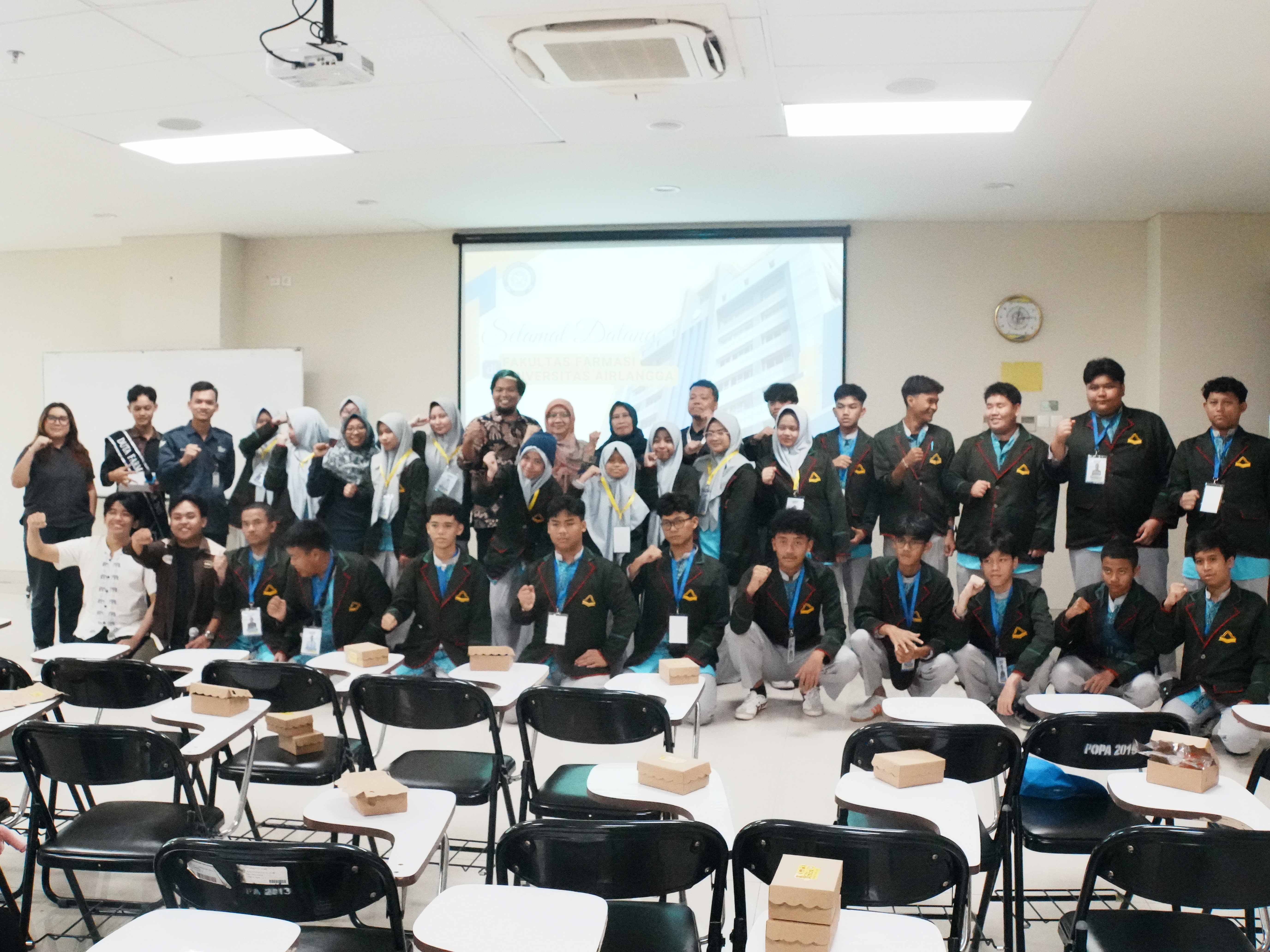 Fakultas Farmasi Universitas Airlangga (FF UNAIR) menerima kunjungan edukatif dari SMA Fastabiqul Khairat Samarinda pada Rabu, 22 Januari 2026. Kegiatan kunjungan ini berlangsung di Ruang Kuliah 5.1 dan dihadiri oleh puluhan peserta yang terdiri atas guru, siswa, serta beberapa orang tua siswa SMA Fastabiqul Khairat Samarinda.