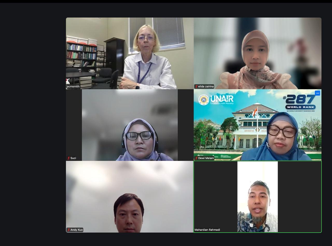 Fakultas Farmasi Universitas Airlangga (FF UNAIR) menggelar initial meeting bersama The University of Queensland (UQ), Australia, untuk membahas peluang kolaborasi dalam skema e-Asia Joint Research Program (JRP). Pertemuan ini dilaksanakan secara daring melalui platform Zoom Meeting dan menjadi langkah awal penjajakan kerja sama riset internasional antara kedua institusi.