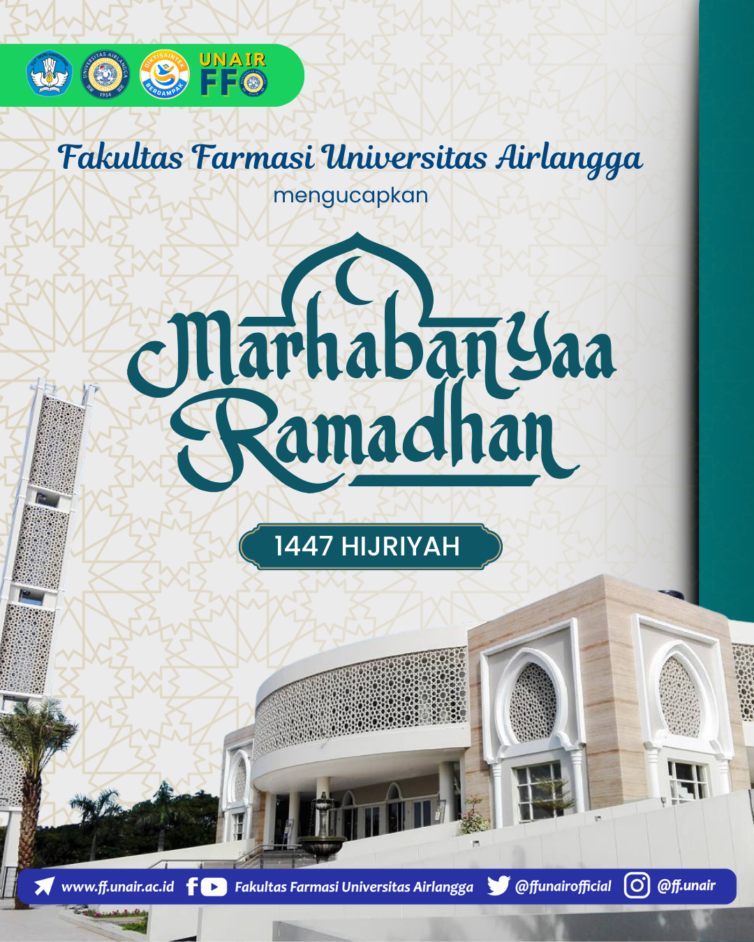 Seluruh Civitas Akademika Fakultas Farmasi UNAIR mengucapkan selamat menunaikan ibadah puasa Ramadhan 1447H. Semoga setiap lapar dan dahaga menjadi jalan penghapus dosa, dan hati kita dipenuhi dengan ketenangan serta keberkahan
