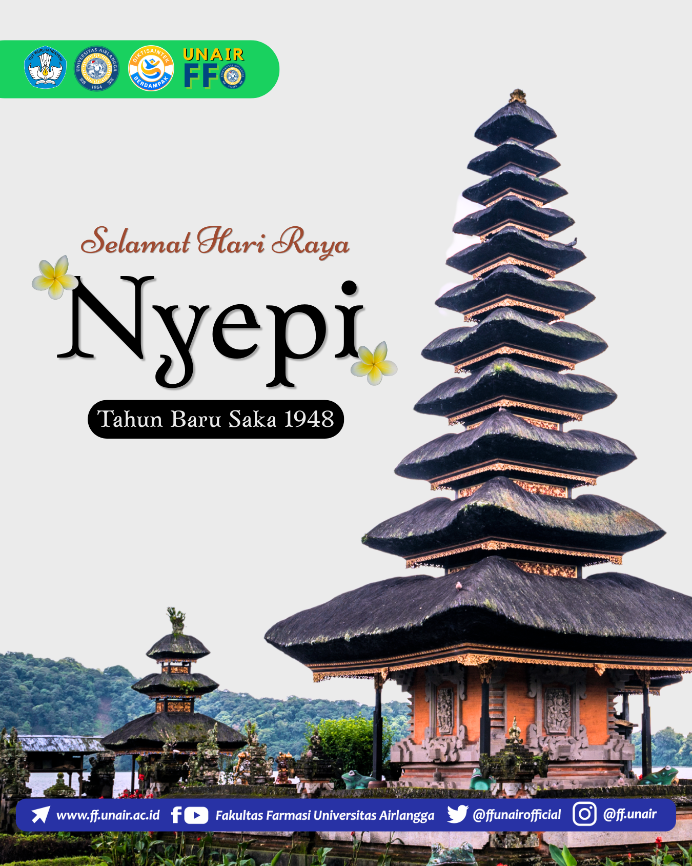 Selamat Merayakan Nyepi Tahun Baru Saka 1948 Fakultas Farmasi Universitas Airlangga 19 Maret 2026 Selamat Hari Raya Nyepi. Semoga kedamaian dan ketenangan senantiasa menyertai kita